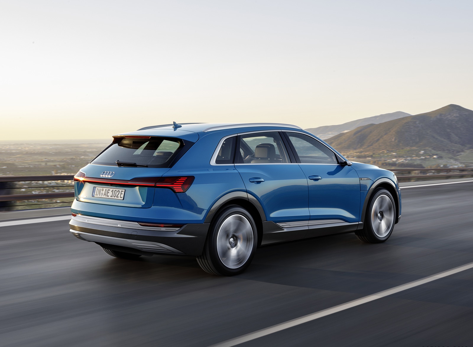 2019 Audi e-tron Electric SUV (Color: Antigua Blue) Rear Three-Quarter HD Wallpaper