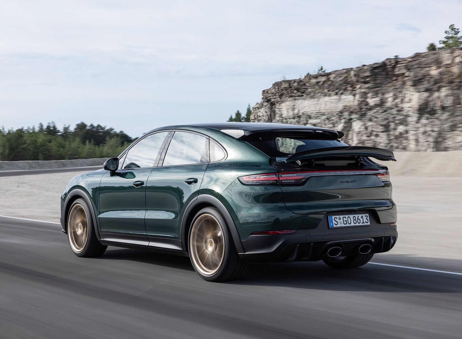 2022 Porsche Cayenne Turbo GT (Color: Porsche Racing Green Metallic) Rear Three-Quarter HD Wallpaper