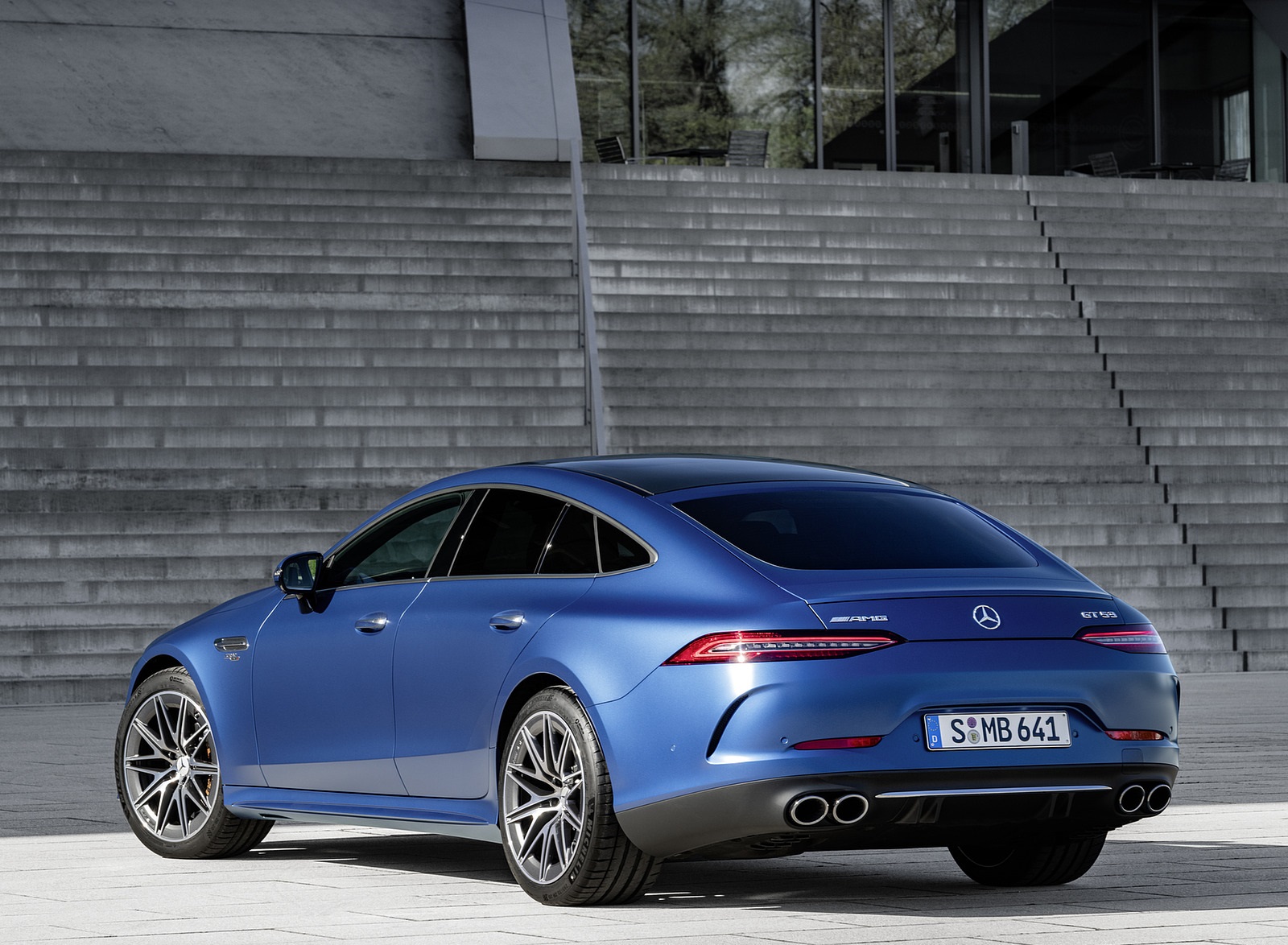 2022 Mercedes-AMG GT 53 4MATIC+ 4-Door Coupe (Color: Spectrale Blue Magno) Rear Three-Quarter Wallpaper