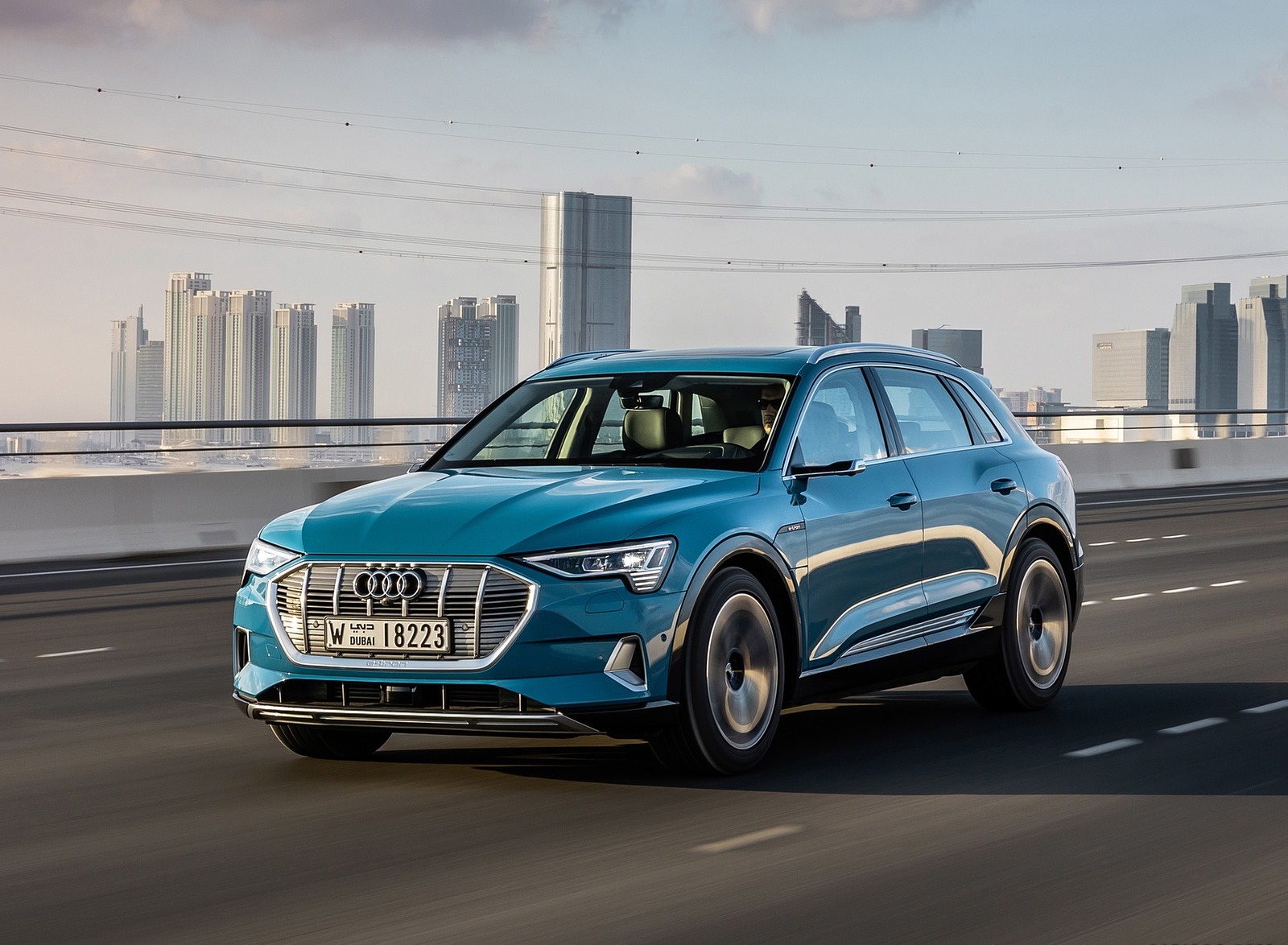 2019 Audi e-tron (Color: Antigua Blue) Front Three-Quarter HD Wallpaper