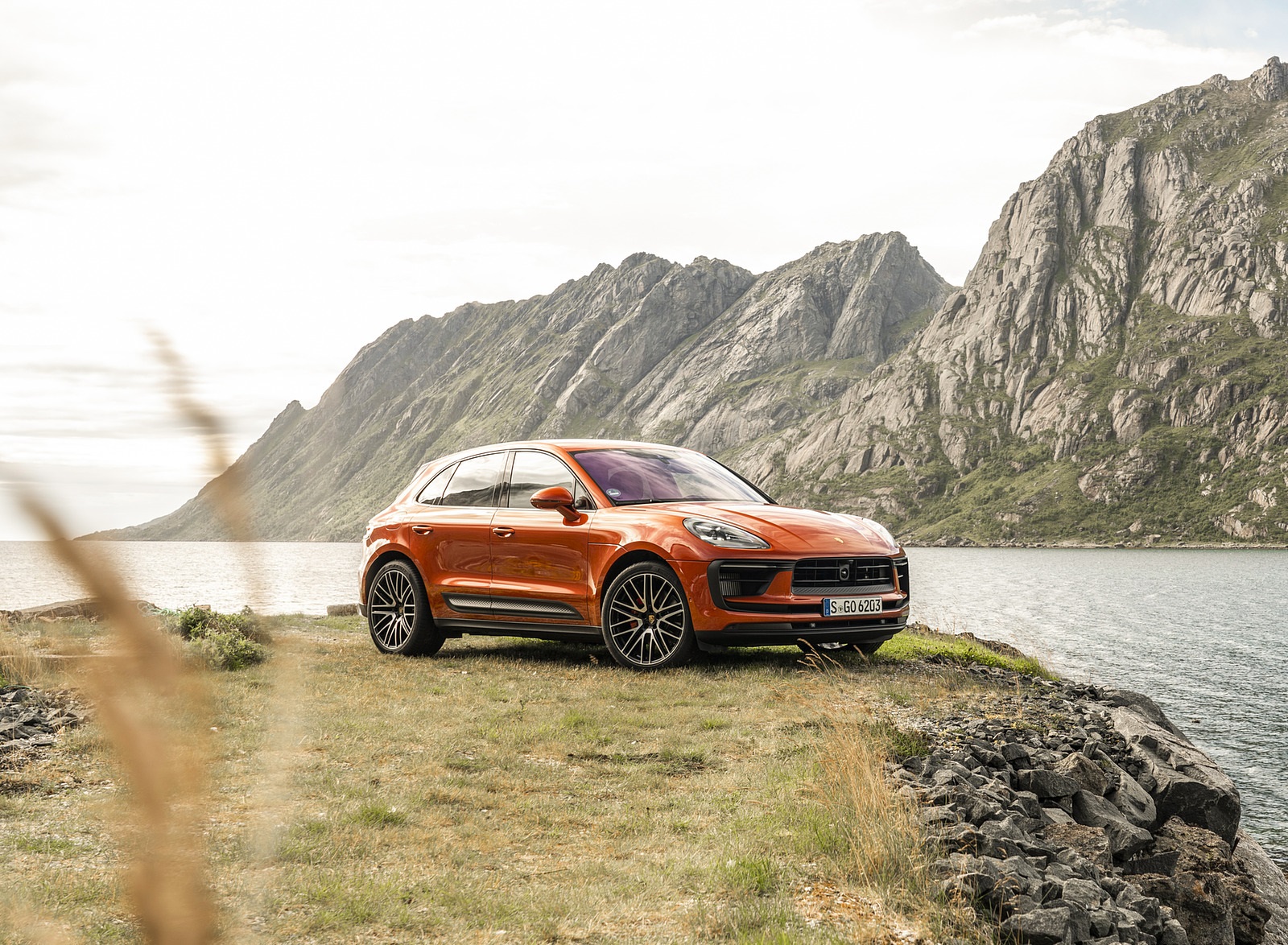 2022 Porsche Macan S (Color: Papaya Metallic) Front Three-Quarter Wallpaper