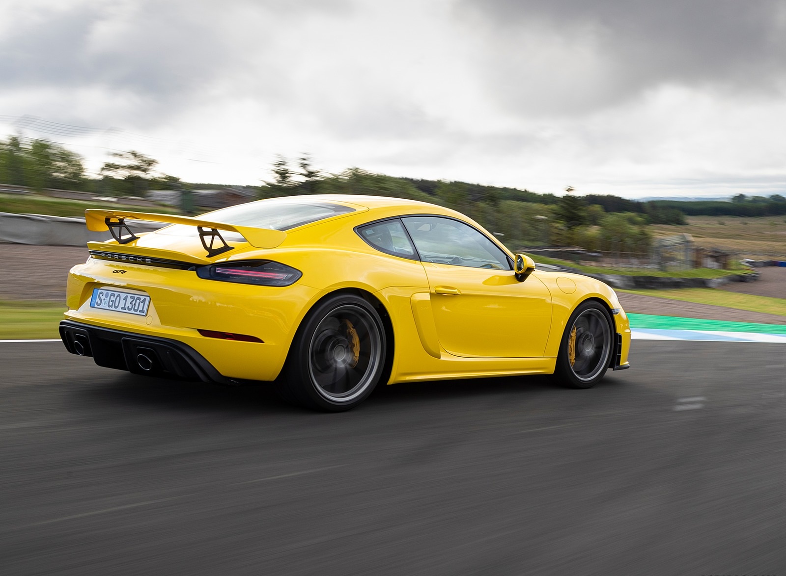 2020 Porsche 718 Cayman GT4 (Color: Racing Yellow) Rear Three-Quarter Wallpaper