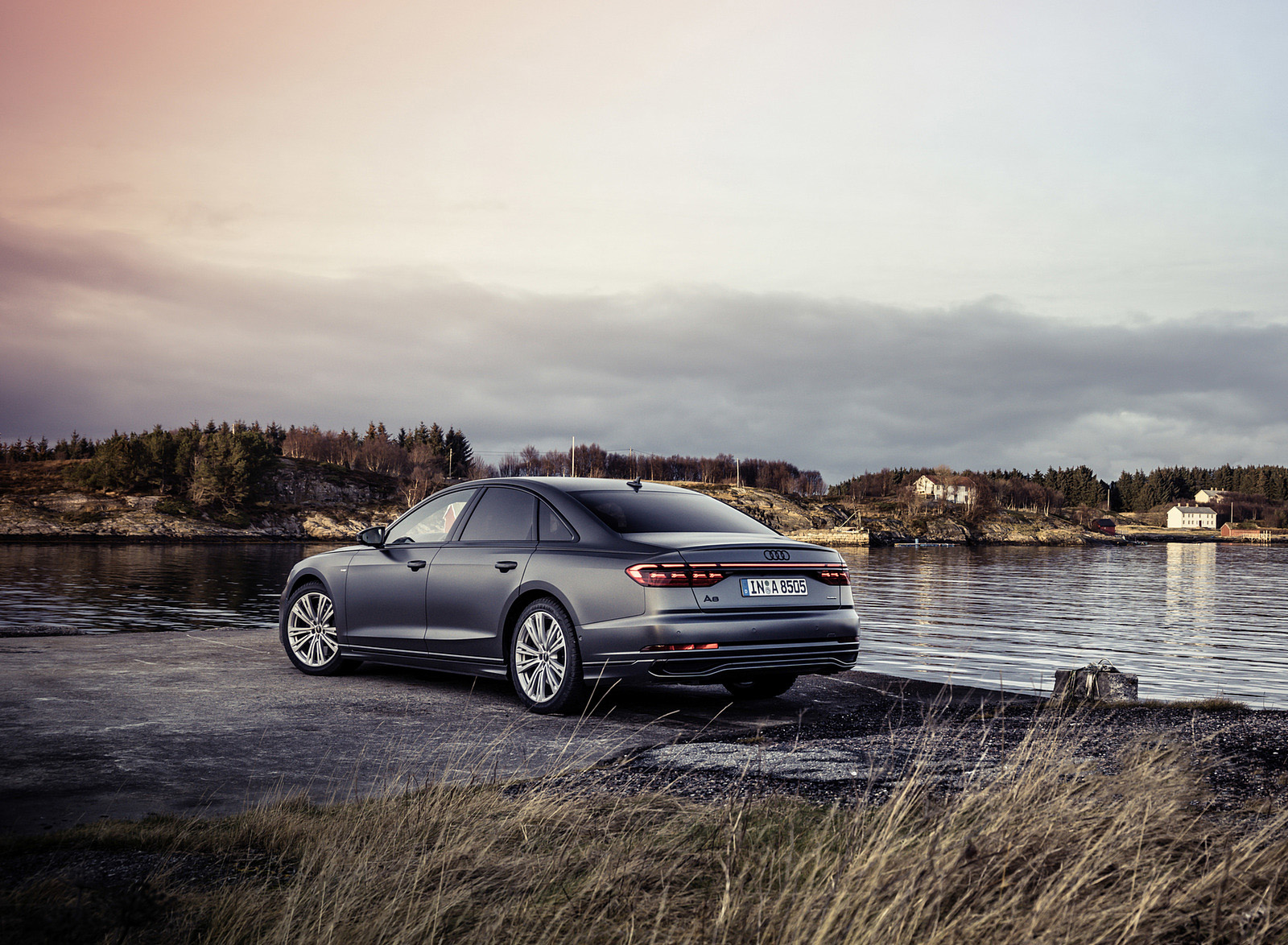 2022 Audi A8 (Color: Daytona Grey Matt Effect) Rear Three-Quarter HD Wallpaper
