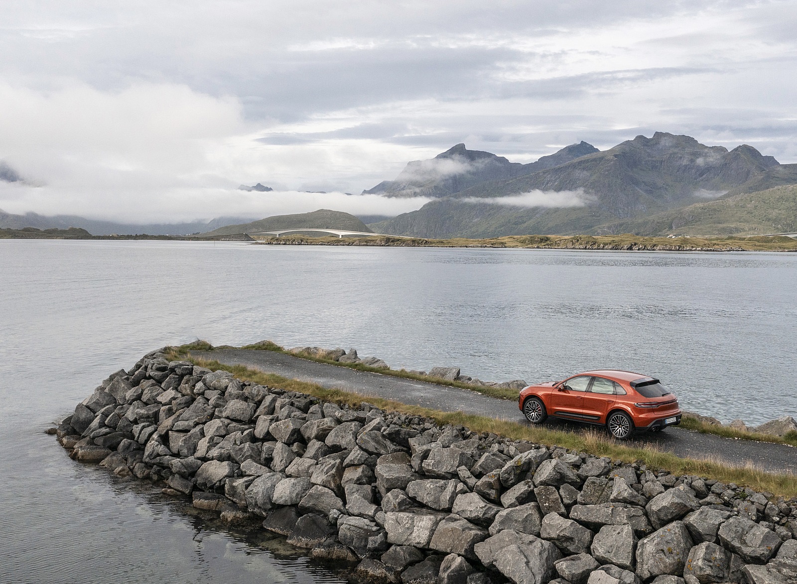 2022 Porsche Macan S (Color: Papaya Metallic) Rear Three-Quarter Wallpaper