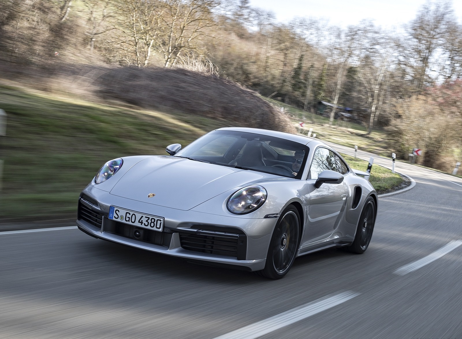 2021 Porsche 911 Turbo S Coupe (Color: GT Silver Metallic) Front Three-Quarter Wallpaper