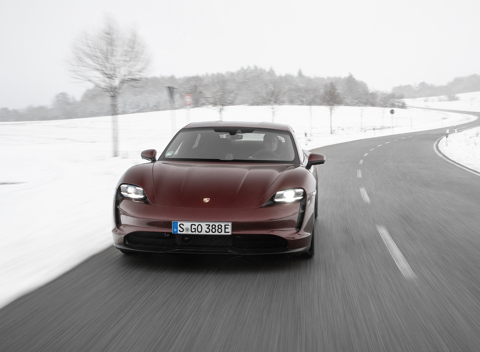 2021 Porsche Taycan (Color: Cherry Metallic) Front HD Wallpaper