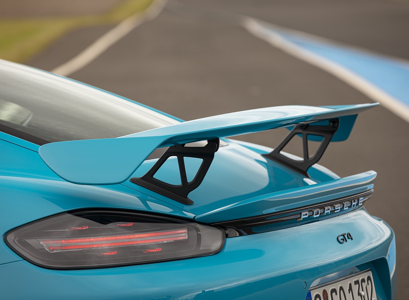 2020 Porsche 718 Cayman GT4 (Color: Miami Blue) Spoiler HD Wallpaper