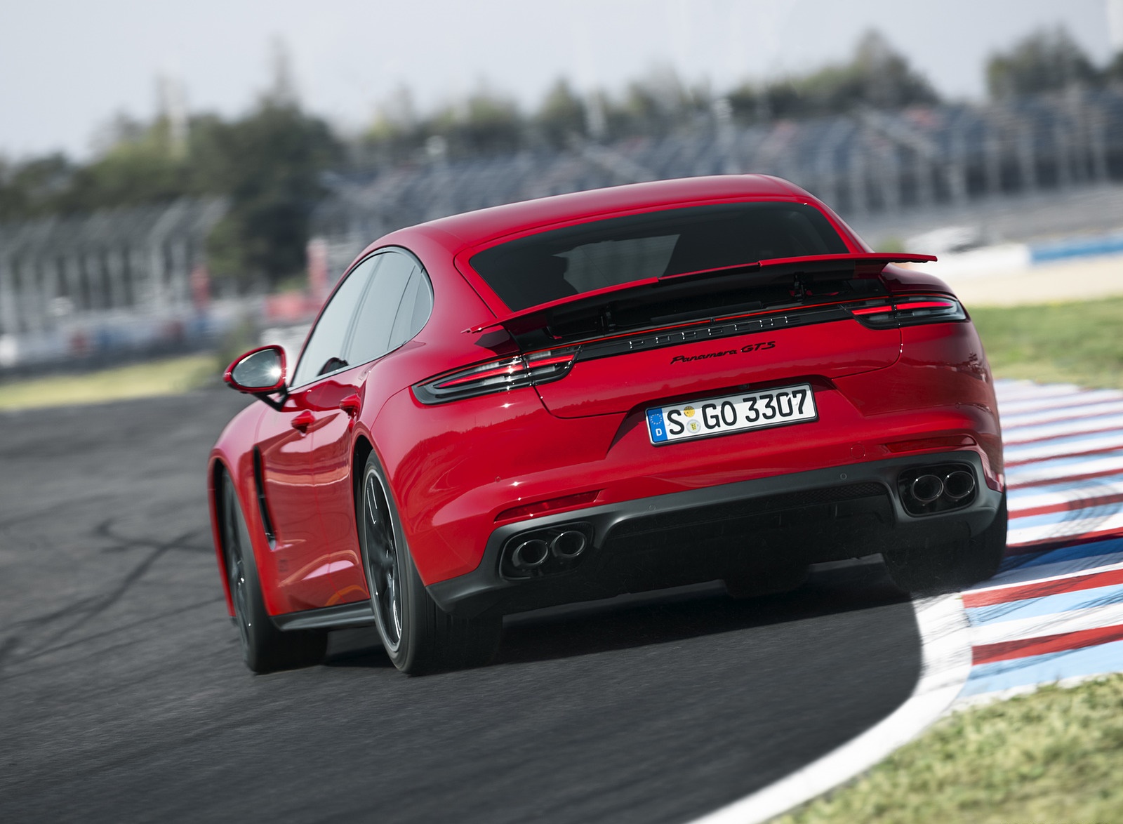 2019 Porsche Panamera GTS (Color: Carmine Red) Rear Three-Quarter Wallpaper