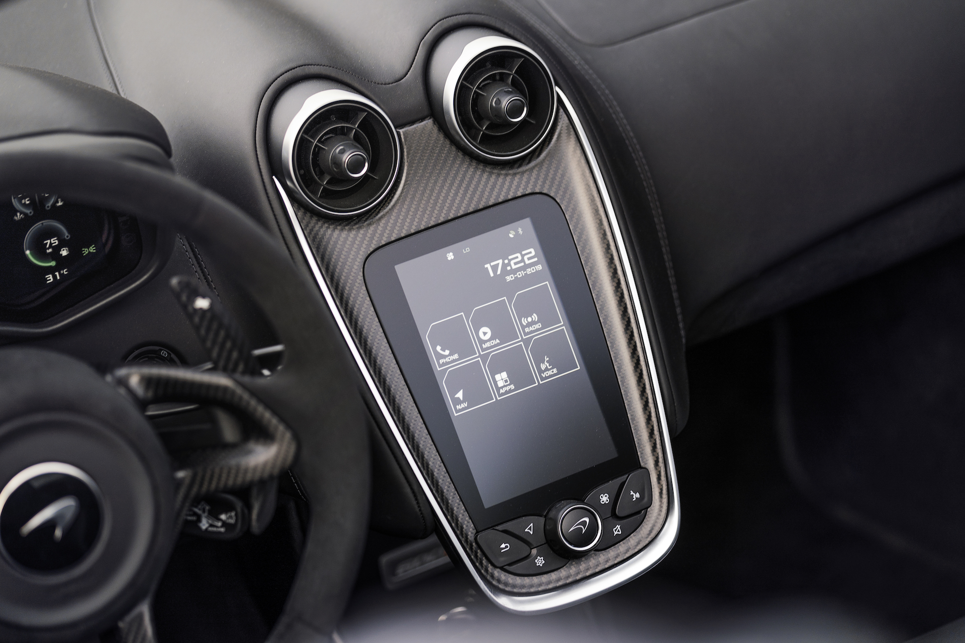 2020 McLaren 600LT Spider (Color: Lantana Purple) Central Console Wallpaper