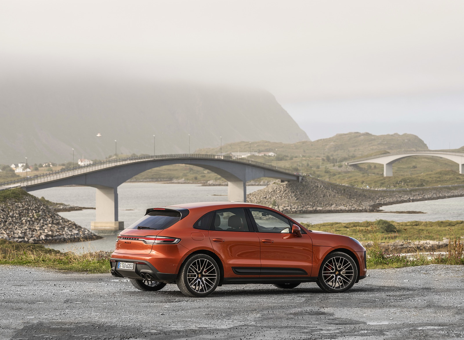 2022 Porsche Macan S (Color: Papaya Metallic) Rear Three-Quarter Wallpaper