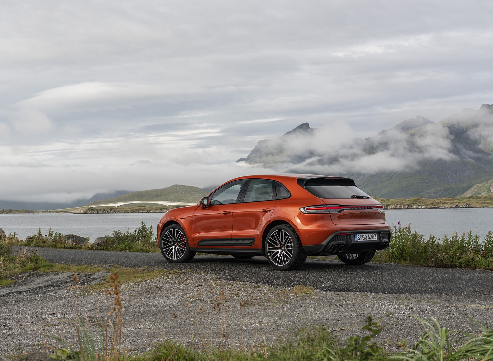 2022 Porsche Macan S (Color: Papaya Metallic) Rear Three-Quarter Wallpaper