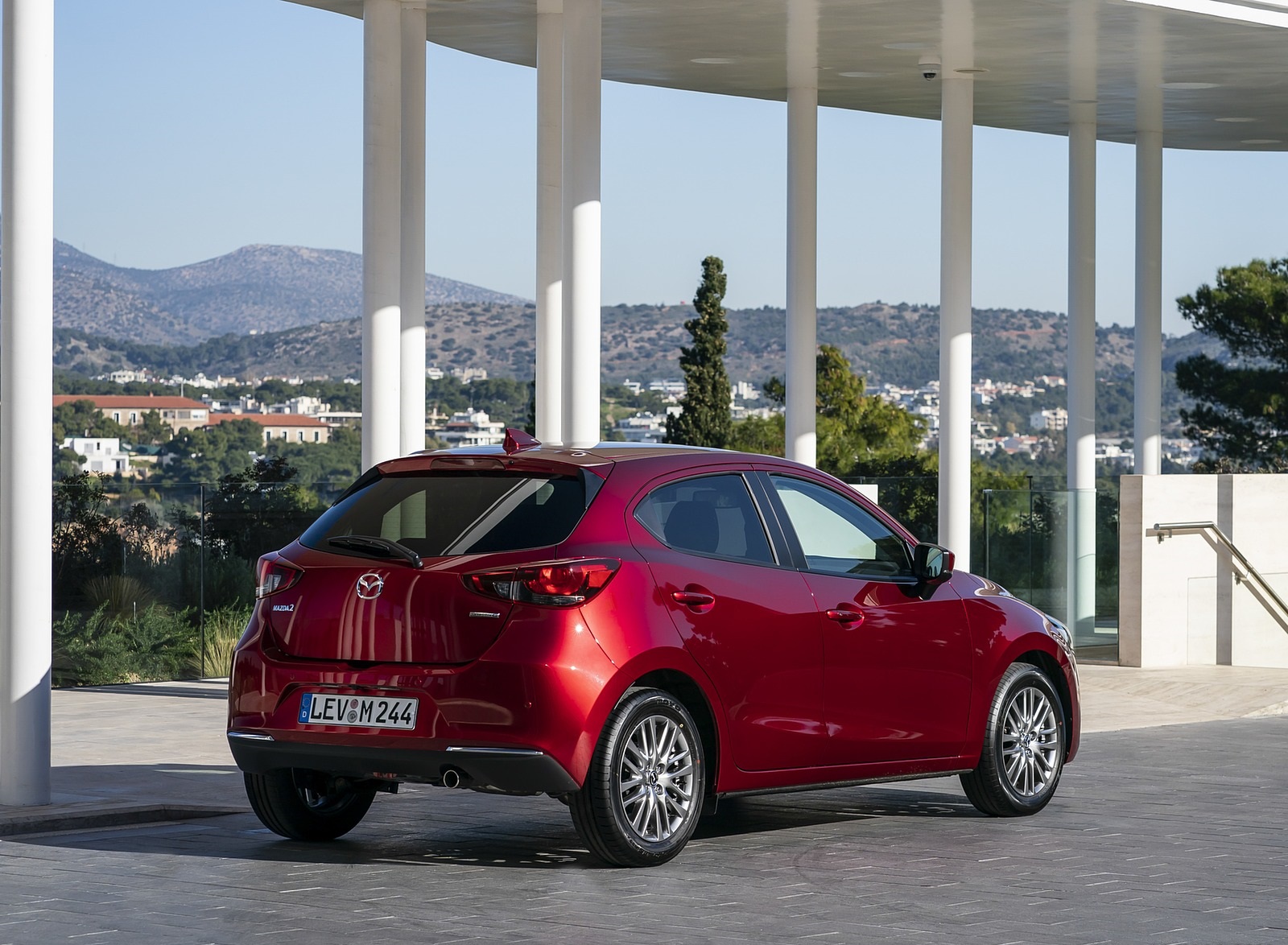 2020 Mazda2 (Color: Red Crystal) Rear Three-Quarter HD Wallpaper
