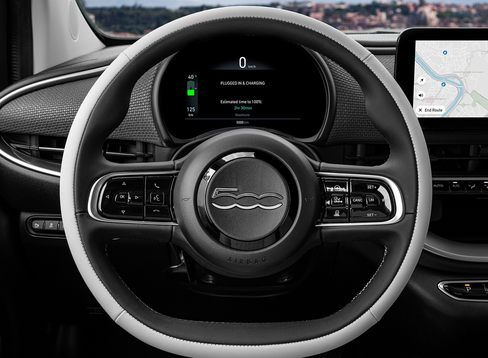 2021 Fiat 500 la Prima EV Interior Steering Wheel Wallpaper