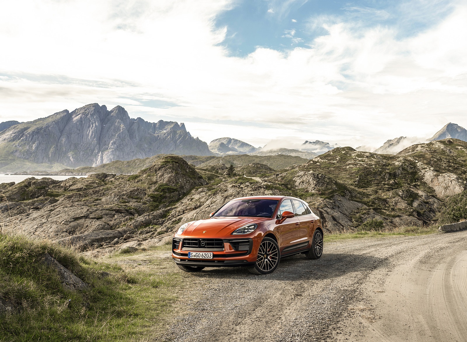 2022 Porsche Macan S (Color: Papaya Metallic) Front Three-Quarter Wallpaper