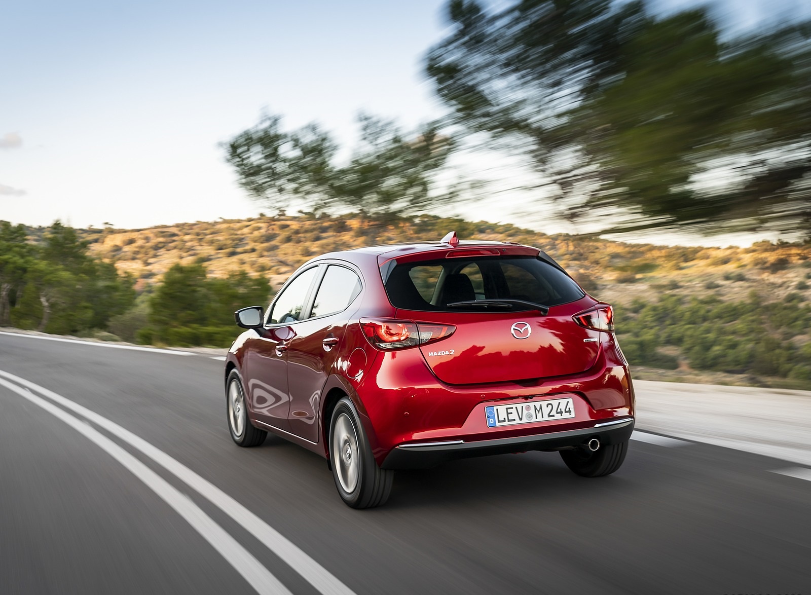 2020 Mazda2 (Color: Red Crystal) Rear Three-Quarter Wallpaper