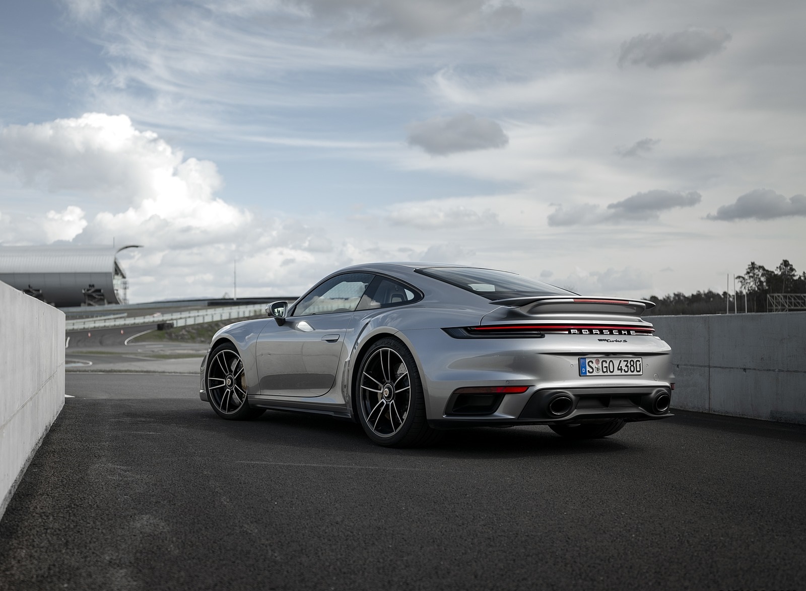 2021 Porsche 911 Turbo S Coupe (Color: GT Silver Metallic) Rear Three-Quarter Wallpaper