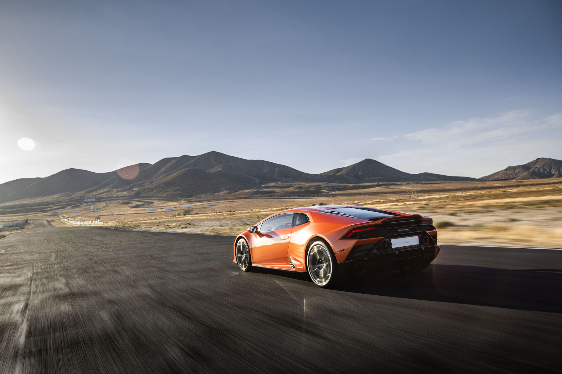 2019 Lamborghini Huracán EVO (Color: Orange) Rear Three-Quarter Wallpaper