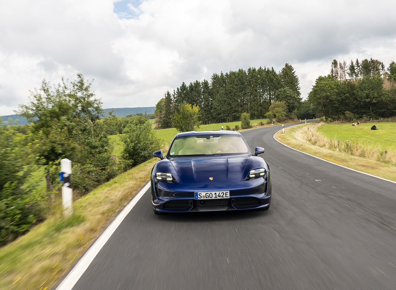 2020 Porsche Taycan Turbo S (Color: Night Blue Metallic) Front HD Wallpaper