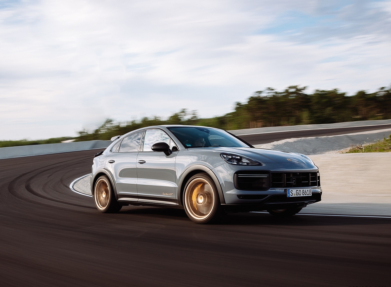 2022 Porsche Cayenne Turbo GT (Color: Arctic Grey) Front Three-Quarter Wallpaper