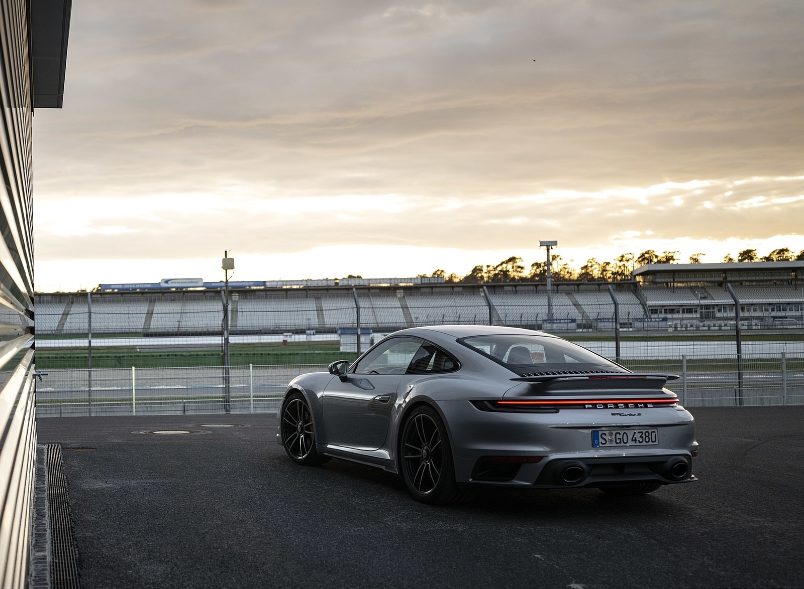2021 Porsche 911 Turbo S Coupe (Color: GT Silver Metallic) Rear Three-Quarter HD Wallpaper