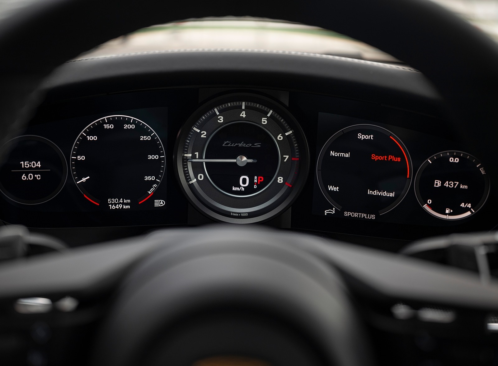 2021 Porsche 911 Turbo S Coupe (Color: GT Silver Metallic) Digital Instrument Cluster Wallpaper